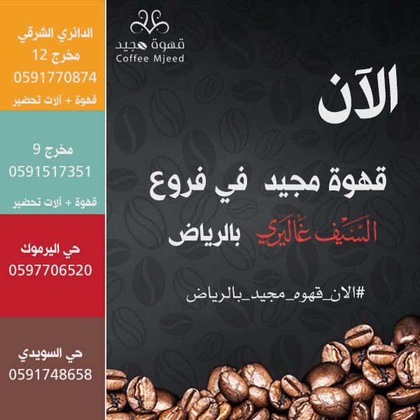 محمصة قهوة مجيد A Twitteren بسم الله وعلى بركة الله الان قهوه مجيد بالرياض لدى فرع السيف غاليري زد رصيدك99